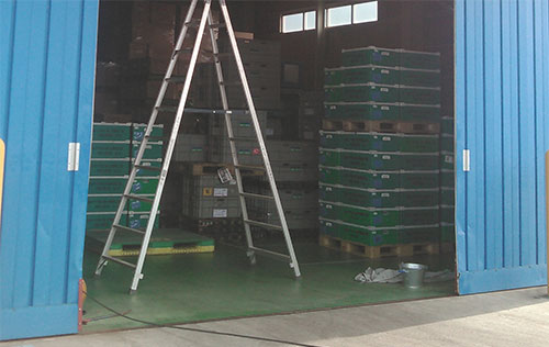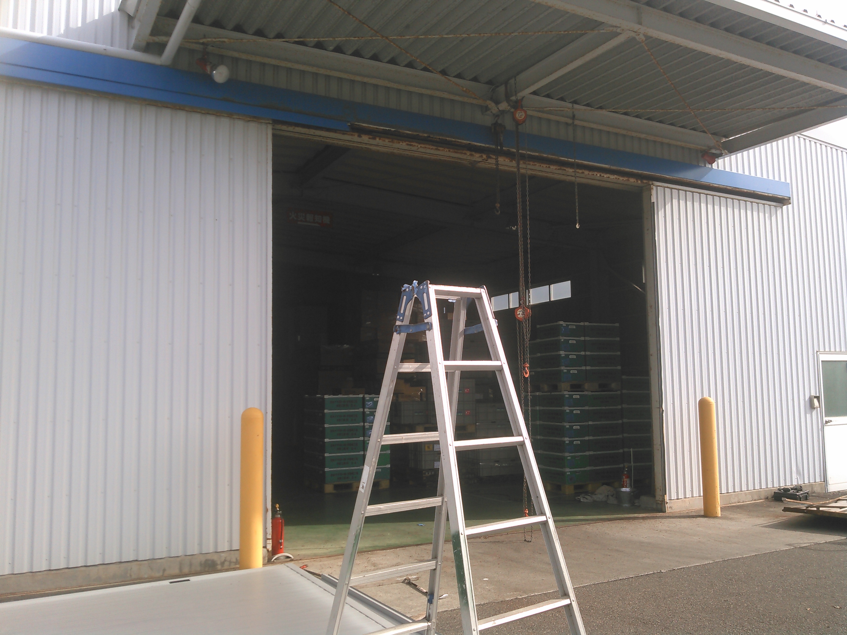 台風の影響でハンガードアがへこんでしまい、開け閉めの際ドアがスムーズに出来なくなってしまったと連絡をいただきました。
